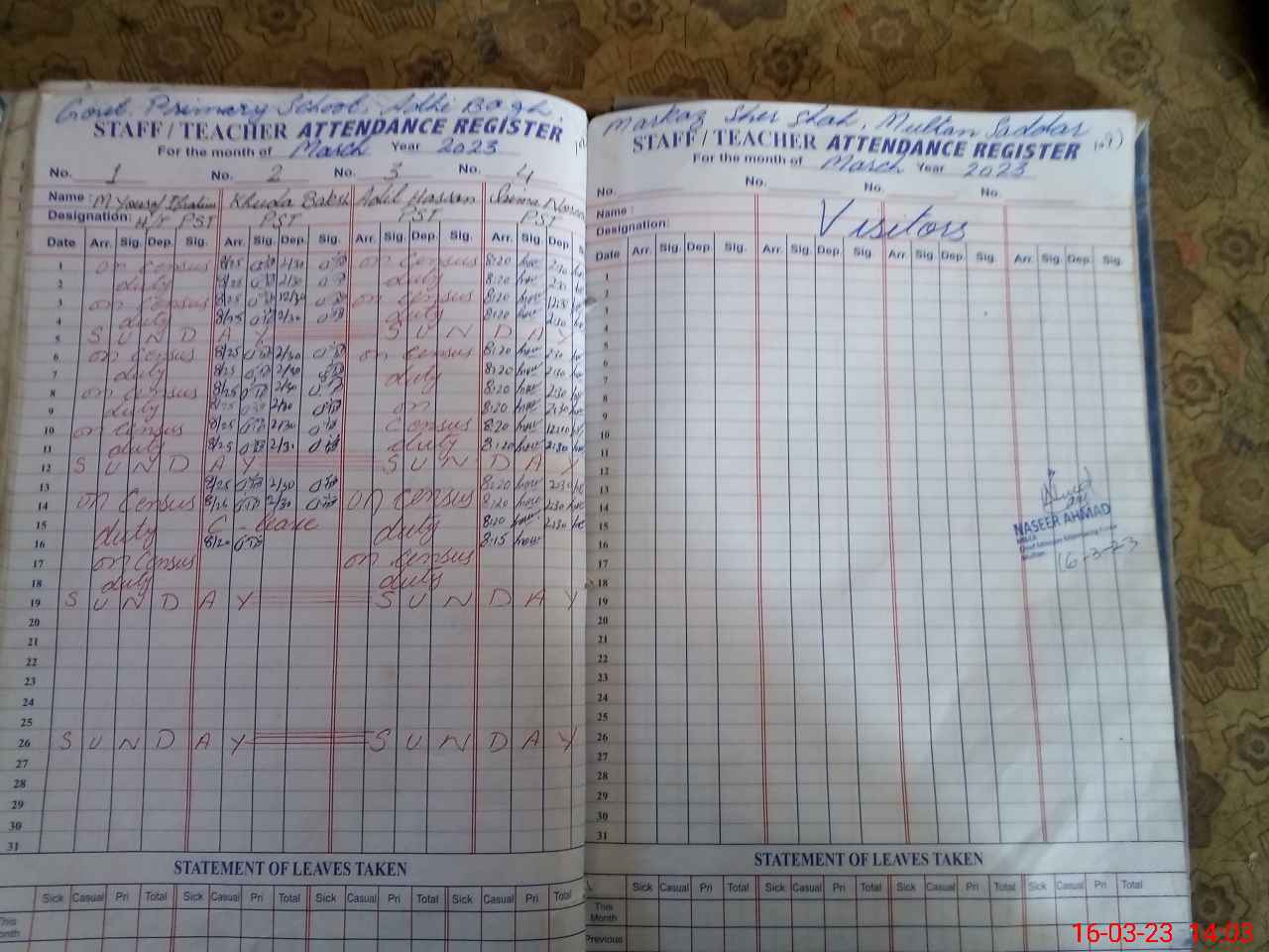 | EMIS Code: 36130325 | Name of School: GPS ADHI BAGH MOZA TARAGARH P/O KHOKHAR | |||