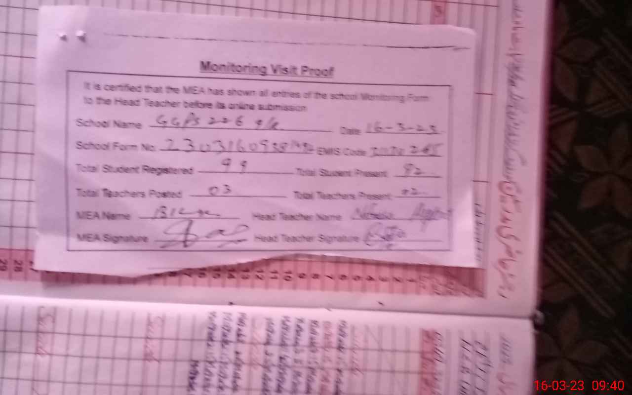 | Attendance Register | Head Teacher | MEA with School | Visit Proof |