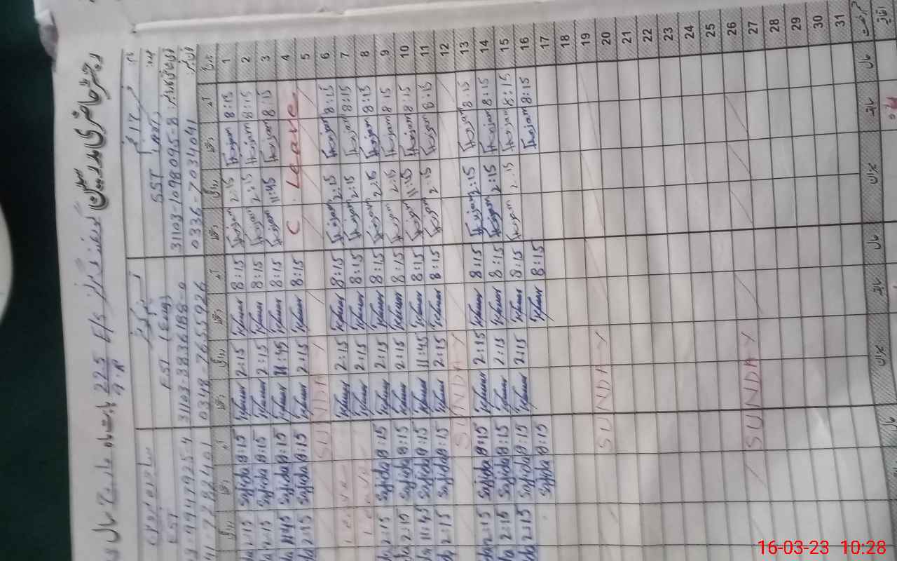 | Name: FA**** AN**** Designation: (School Headmaster's/Headmistress's) S.S.T. GEN Phone/Cell Number: 03**** |