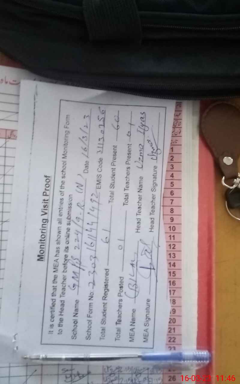 | Attendance Register | Head Teacher | MEA with School | Visit Proof |