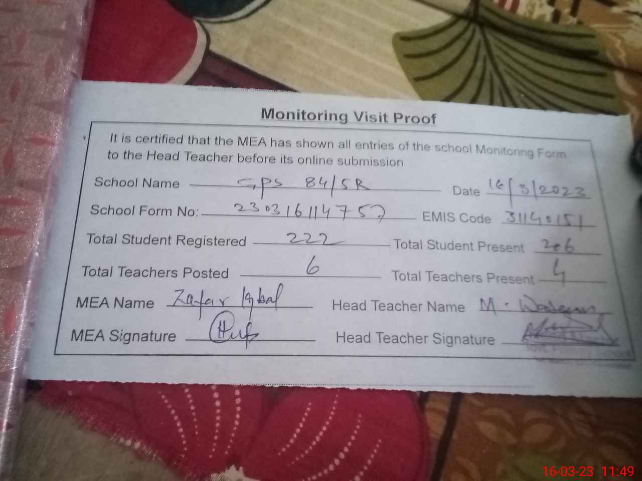 | EMIS Code: 31140151 | Name of School: GPS CHAK NO 84/5-R | |||