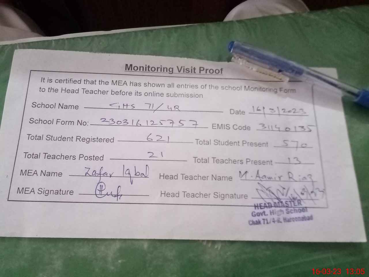 | EMIS Code: 31140135 | Name of School: GHS CHAK NO 71/4-R | |||