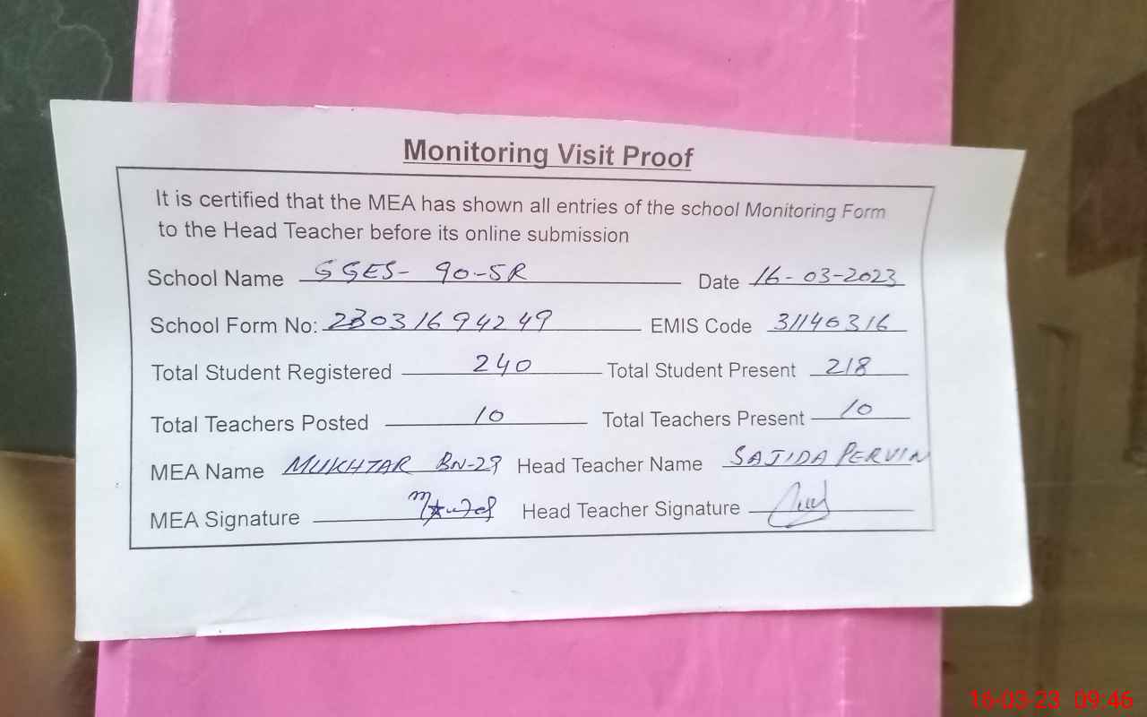 | EMIS Code: 31140316 | Name of School: GGES CHAK NO. 90/5-R CH | |||