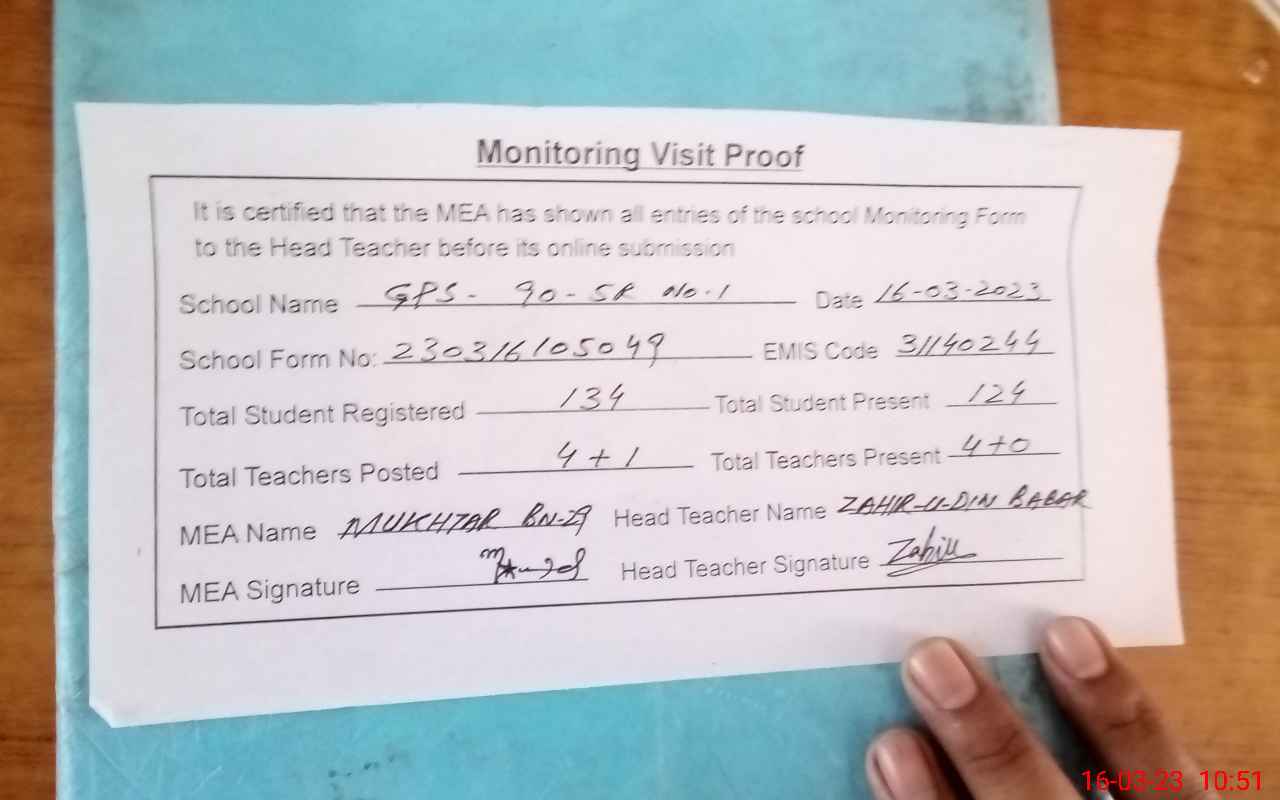 | EMIS Code: 31140244 | Name of School: GPS CHAK NO 90/5-R NO. 1 | |||