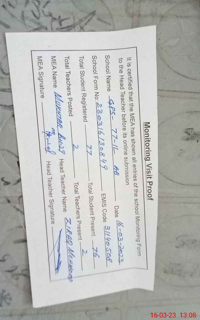 | EMIS Code: 31140508 | Name of School: GPS CHAK NO 77 1L ab | |||