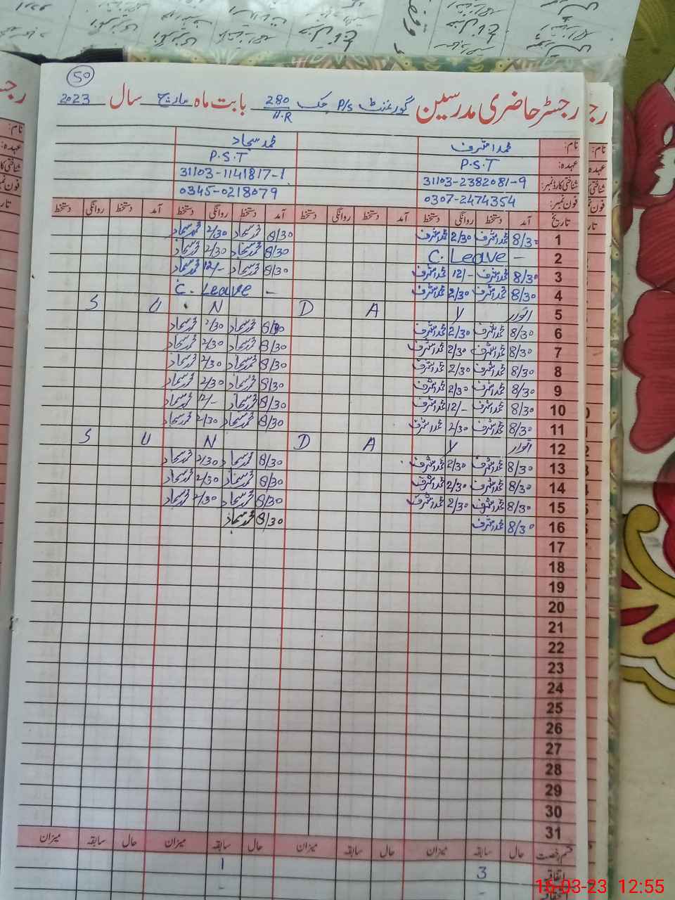| Name: M.**** Designation: (School Headmaster's/Headmistress's) PTC/JV Phone/Cell Number: 03**** |