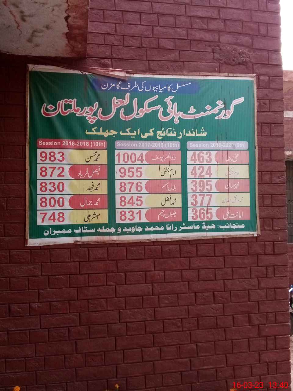 | EMIS Code: 36130077 | Name of School: GHS LAL PUR CHAK NO. 15 FAIZ | |||