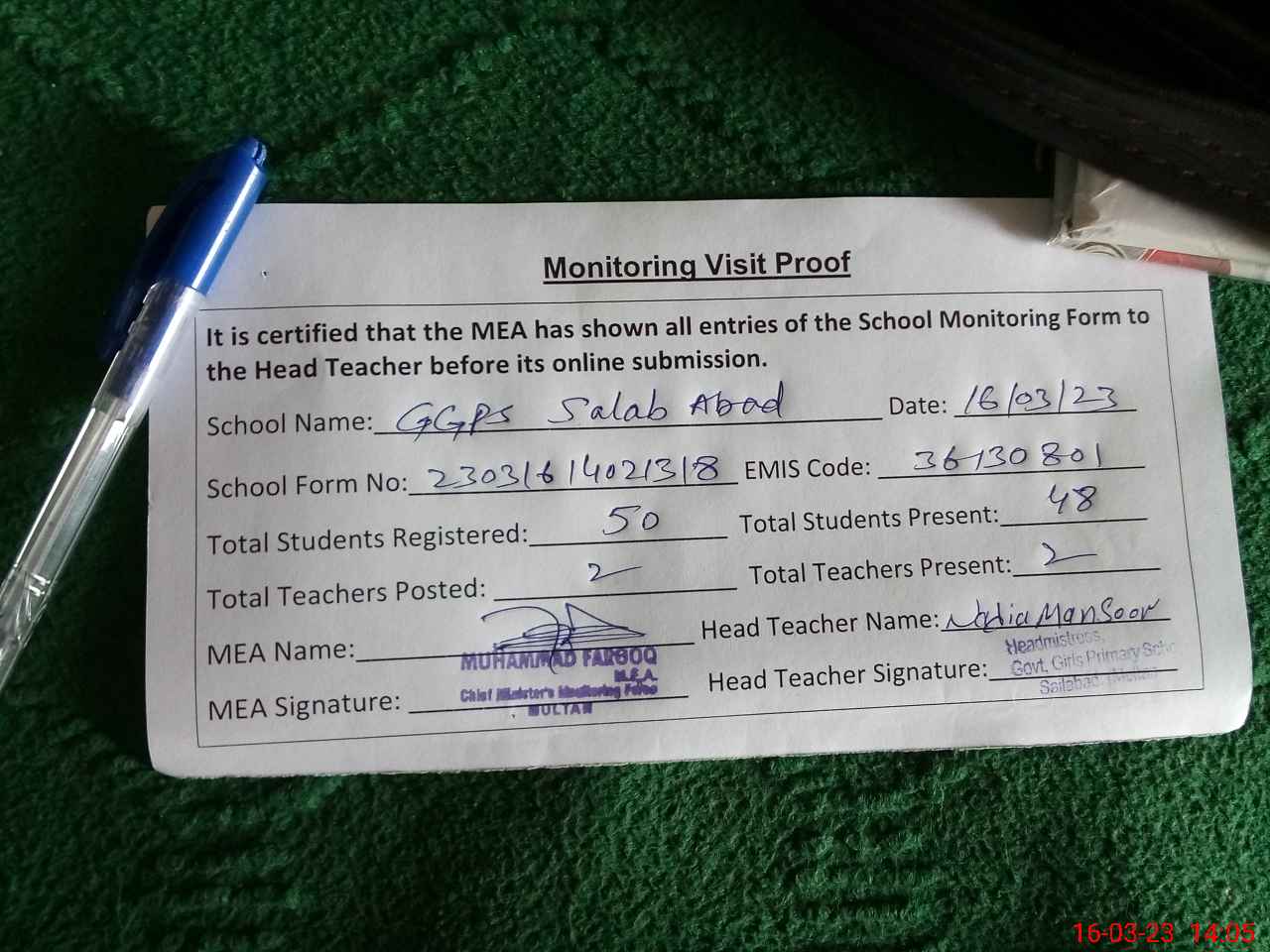 | EMIS Code: 36130801 | Name of School: GGPS SALAB ABAD | |||