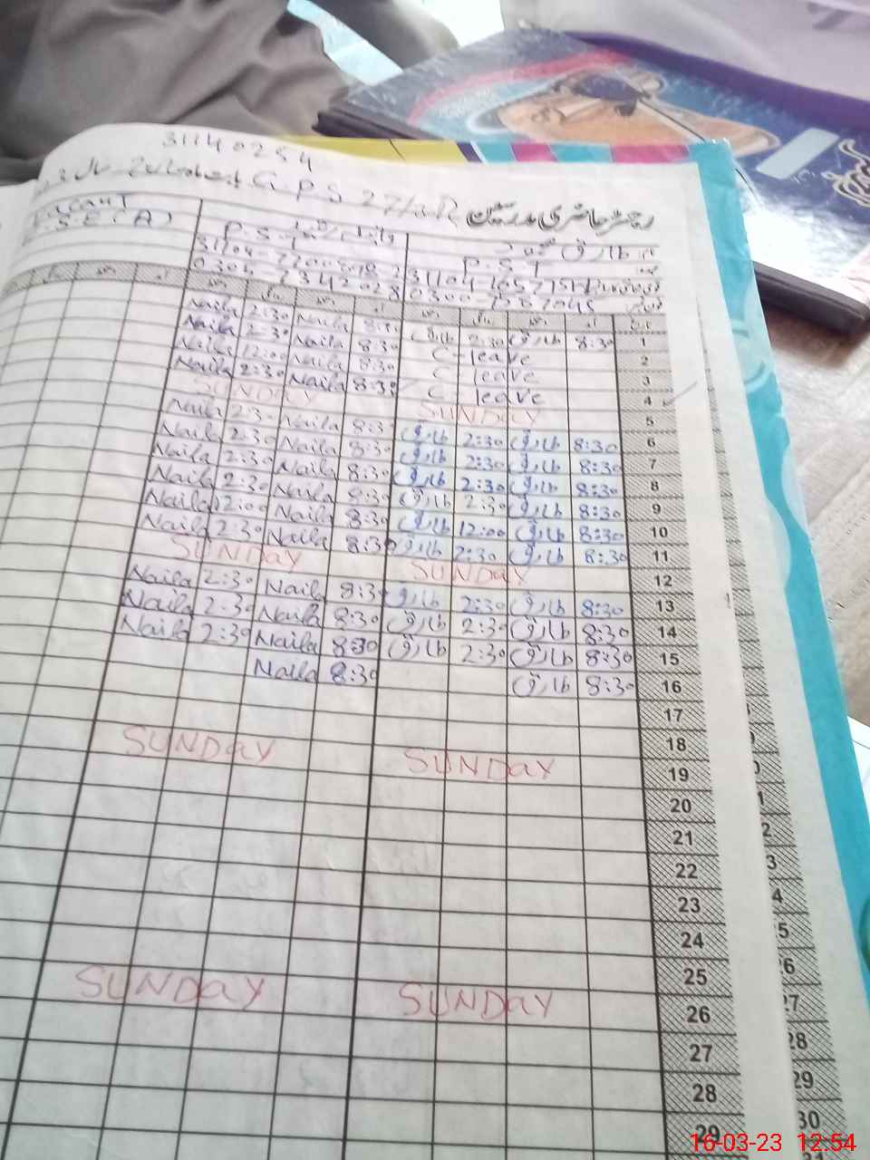 | CNIC | Full Name | Designation | R/C | Absence During Last Calender Month |