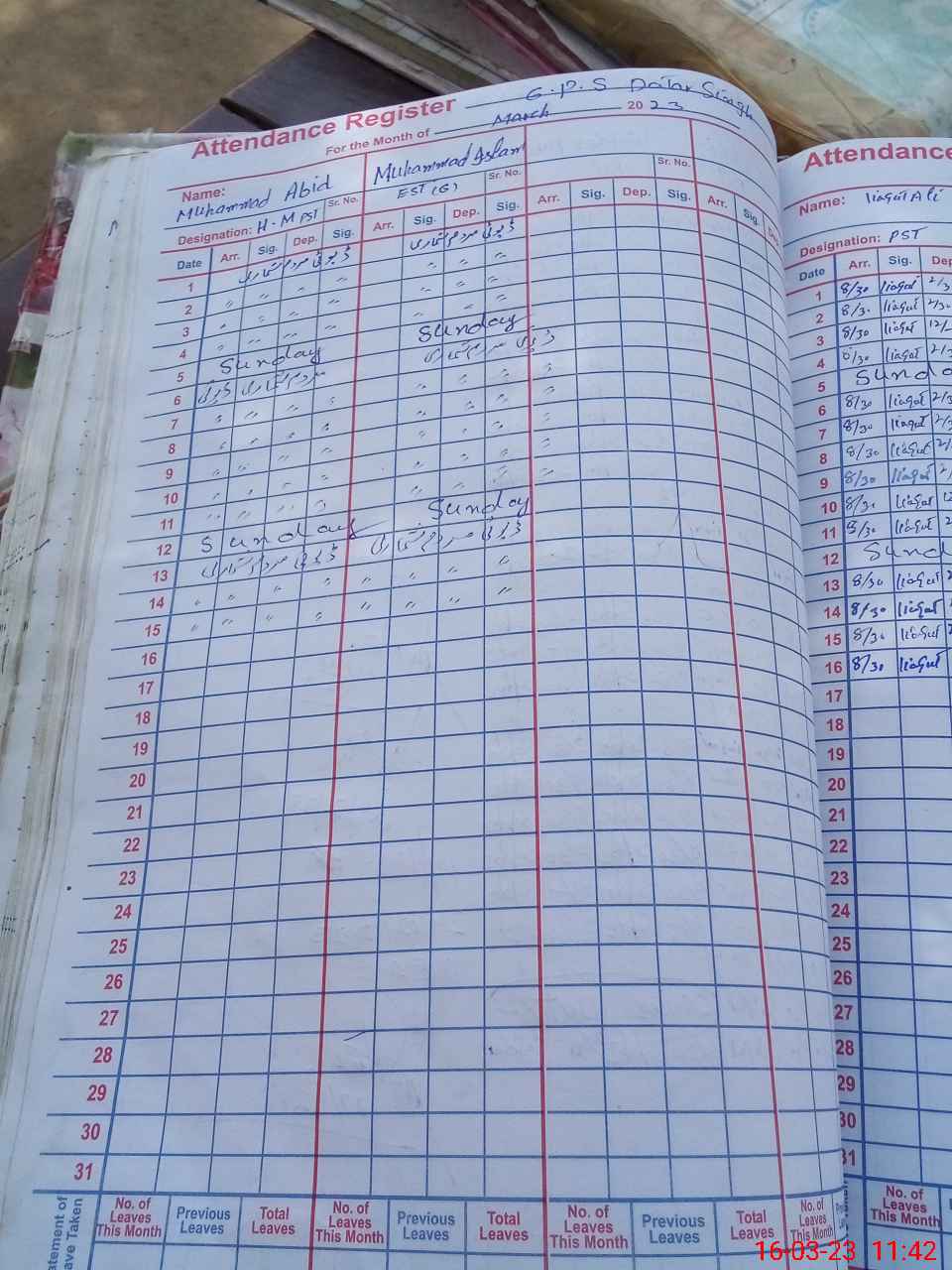 | CNIC | Full Name | Designation | R/C | Absence During Last Calender Month |
