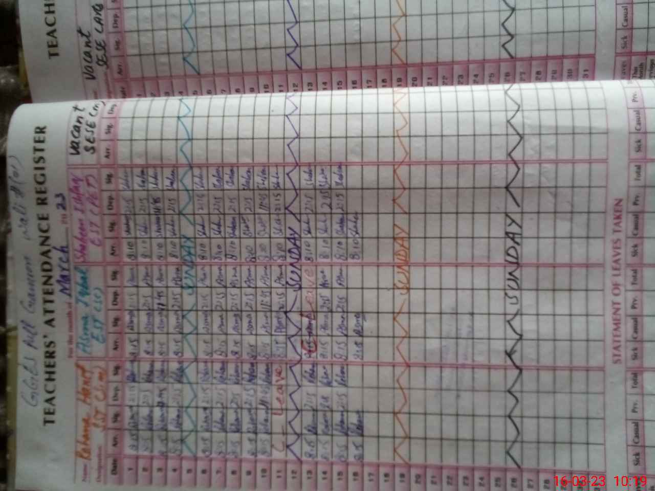 | No. of Students Present - Female | 0 | 0 | 21 | 11 | 12 | 19 | 18 | 16 | 13 | 18 | 10 | 138 | ||||