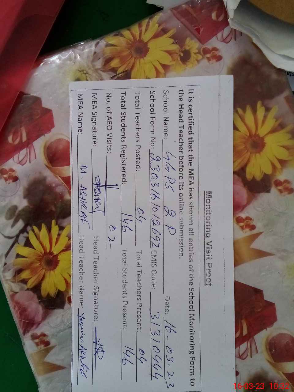 | EMIS Code: 31310444 | Name of School: GGPS CHAK NO. 2/P | |||