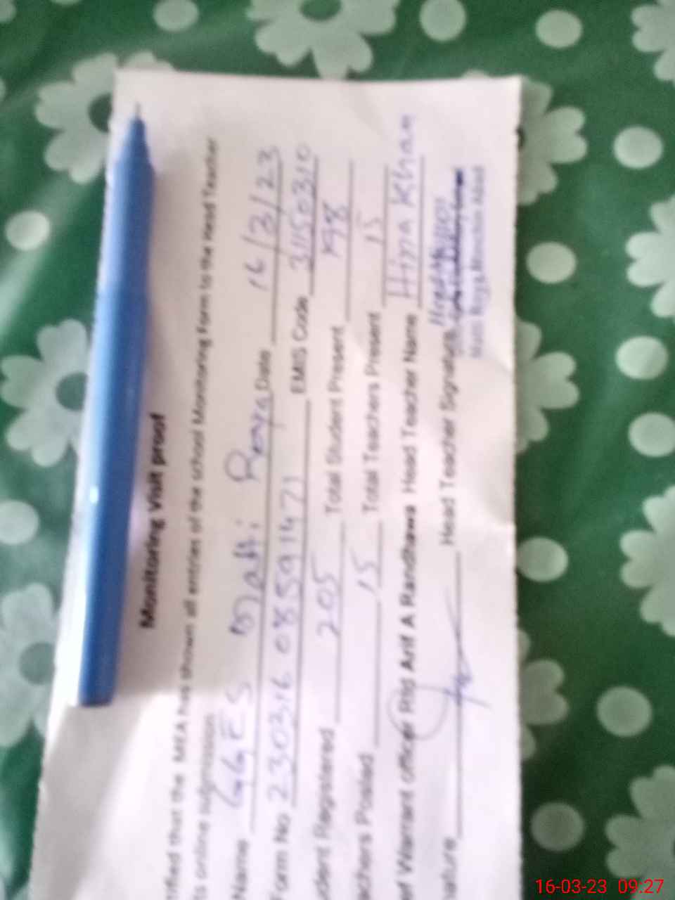 | Name: HI**** KH**** Designation: (School Headmaster's/Headmistress's) SST Phone/Cell Number: 03**** |