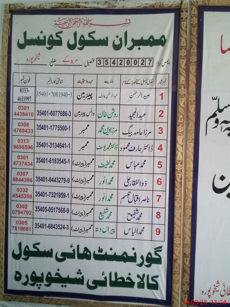 | District: SHEIKHUPURA | Tehsil: MURIDKE | Markaz: SECONDARY-WING | Level: High | |