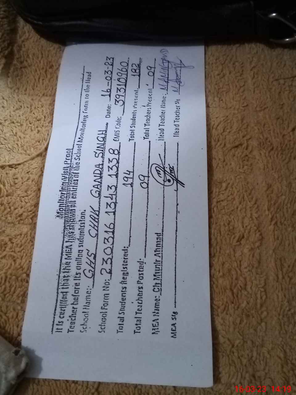 | EMIS Code: 39310994 | Name of School: GHS CHAK GANDA SINGH | |||