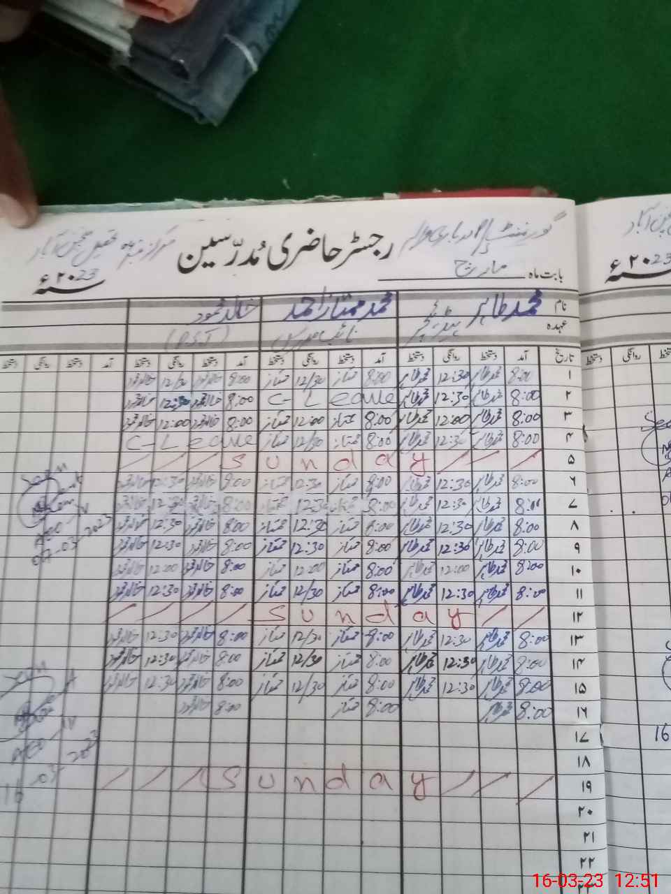 | CNIC | Full Name | Designation | R/C | Absence During Last Calender Month |