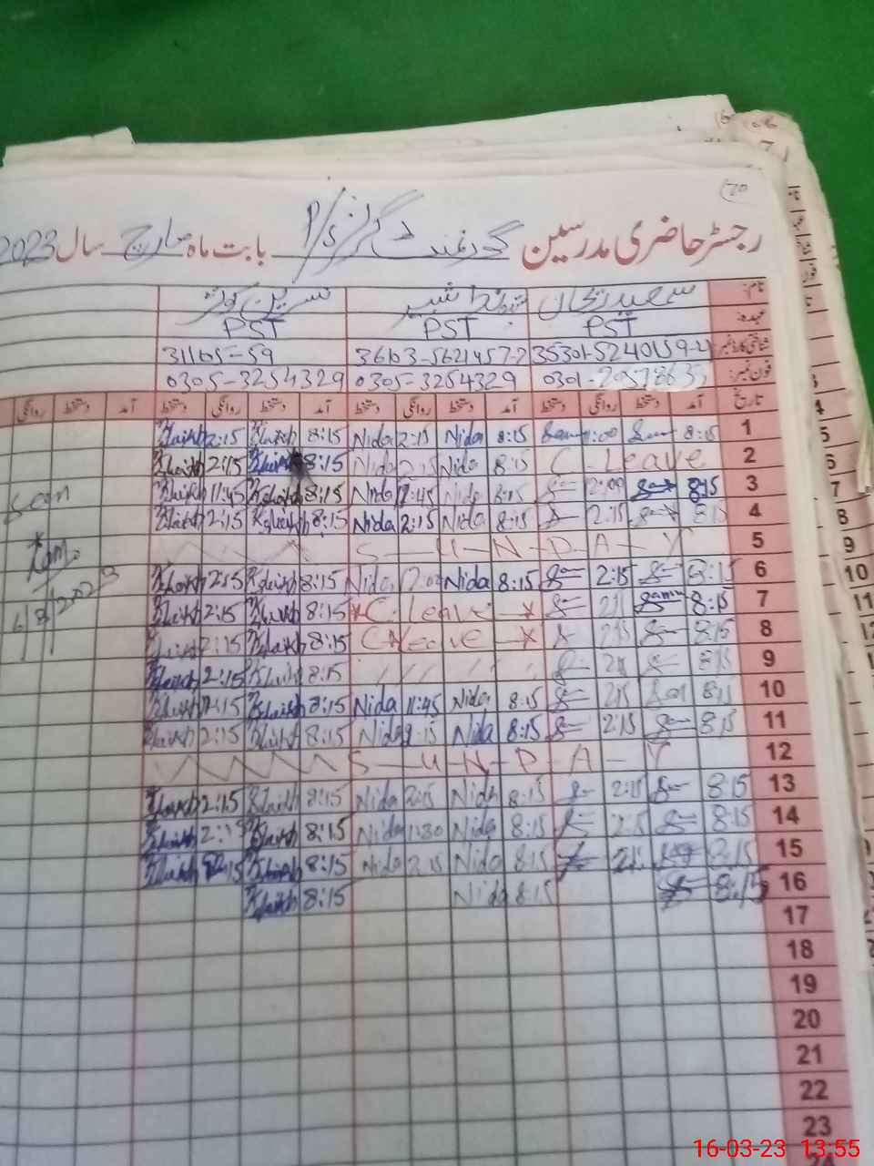 | Name: SA**** RE**** Designation: (School Headmaster's/Headmistress's) PST Phone/Cell Number: 03**** |