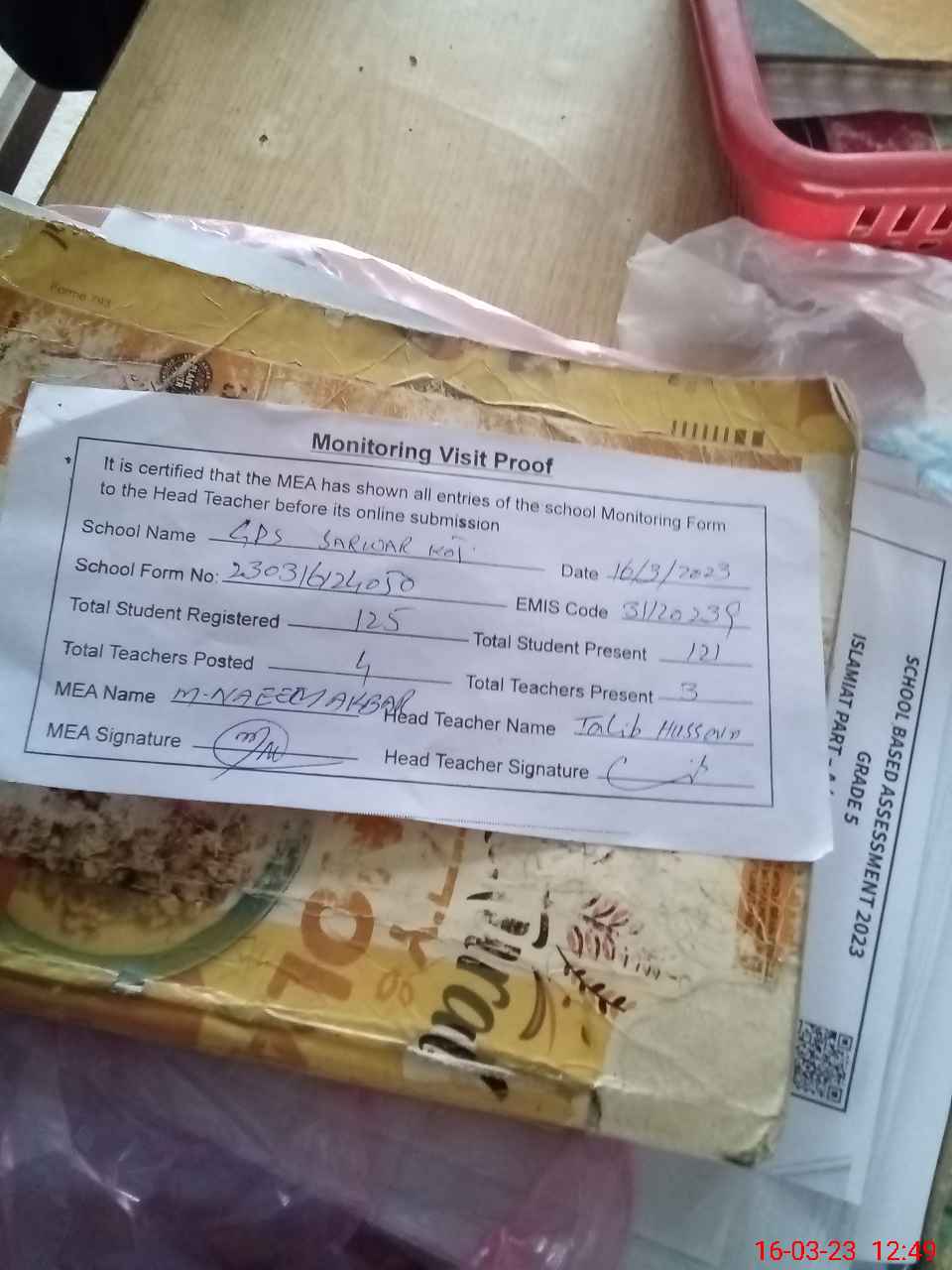 | EMIS Code: 31120239 | Name of School: GPS SARWAR KOT | |||
