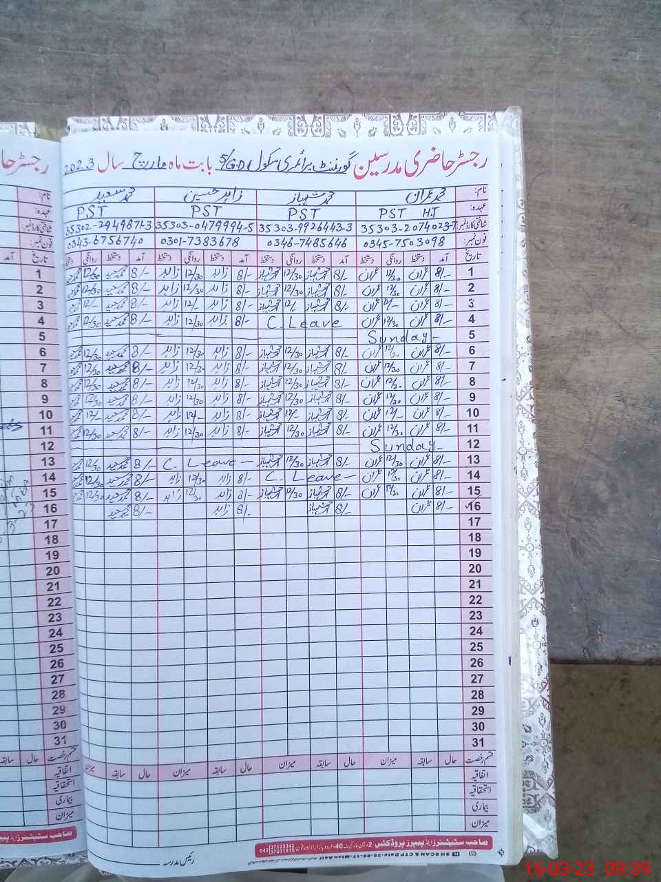 | Name: Mu**** Im**** Designation: (School Headmaster's/Headmistress's) PTC/JV Phone/Cell Number: 03**** |