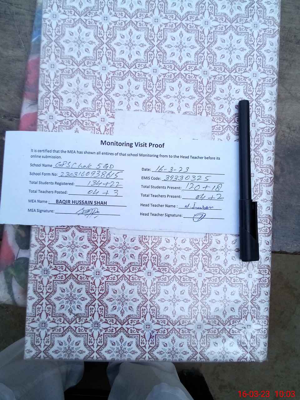 | EMIS Code: 39330325 | Name of School: GPS CHAK NO 5/GD | |||