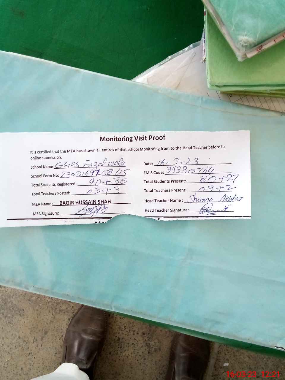 | EMIS Code: 39330764 | Name of School: GGPS CHAK FAZAL WALA | |||