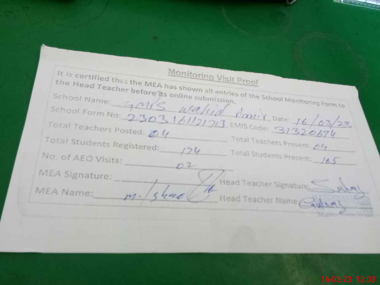 | EMIS Code: 31320674 | Name of School: GMPS WAHID AMIR | |||