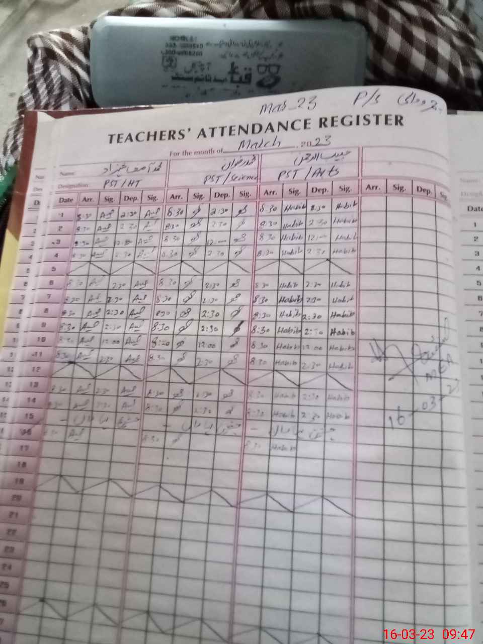 | Name: M.**** SH**** Designation: (School Headmaster's/Headmistress's) ESE Phone/Cell Number: 03**** |