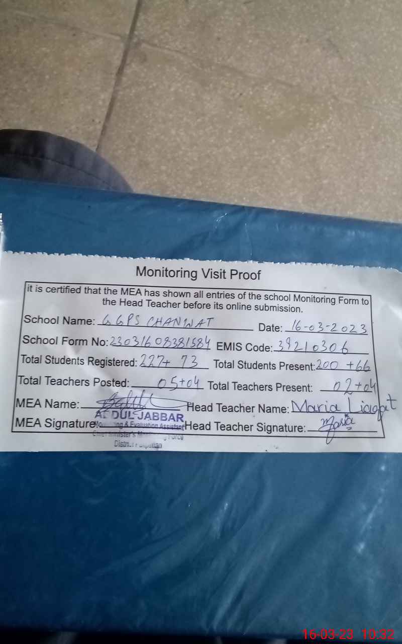 | EMIS Code: 39210306 | Name of School: GGPS CHANWAT | |||