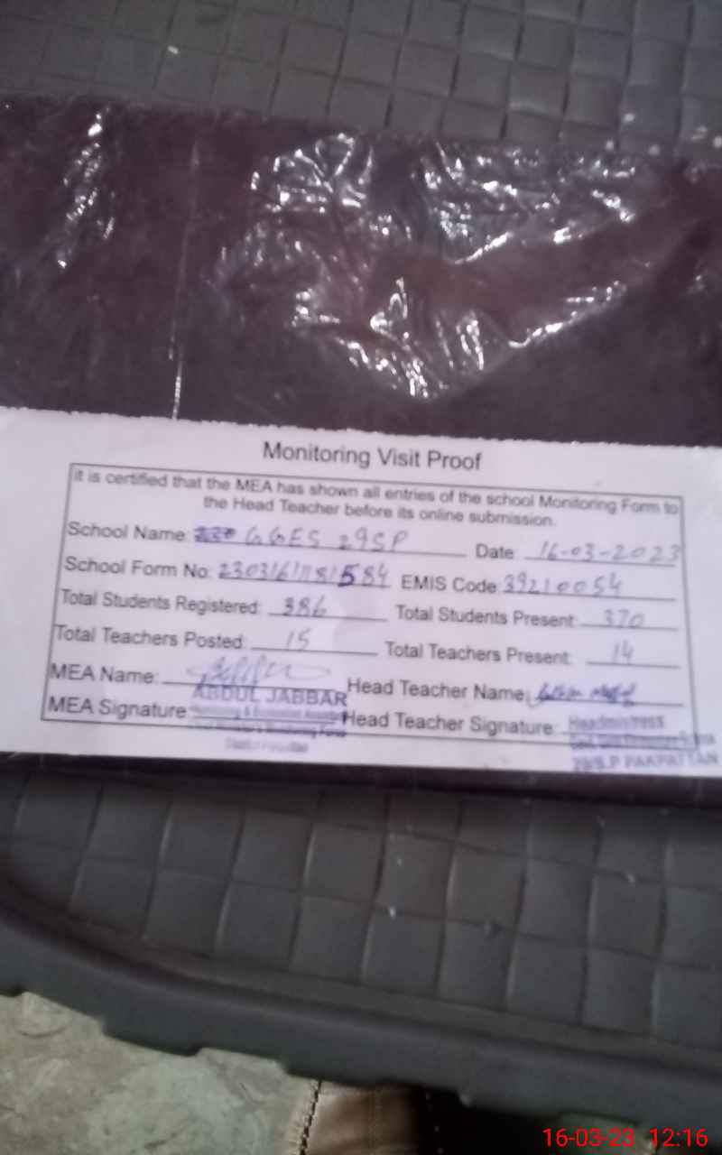 | Certified that this School was Inspected by the Undersigned MEA/DMO Today and the Information Stated Above is as Per Record. | |||||
