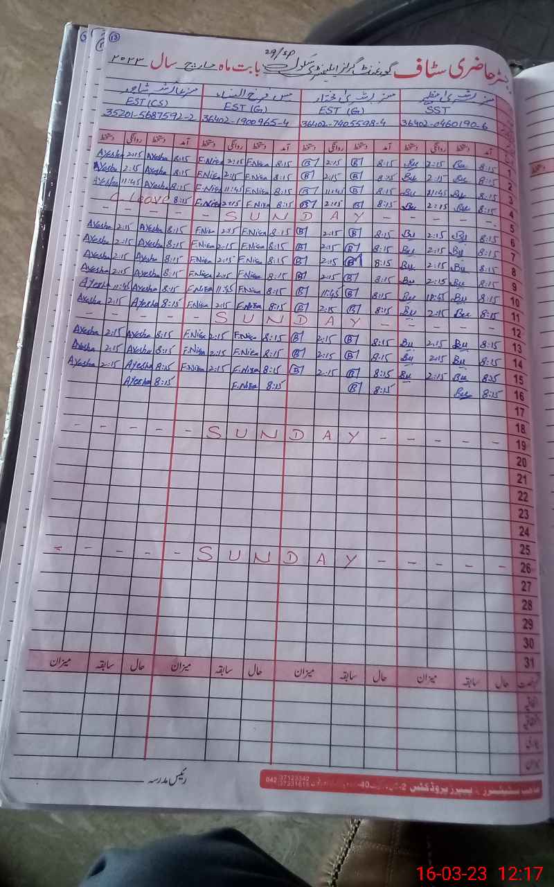 | Name: BU**** GH**** Designation: (School Headmaster's/Headmistress's) SST ( MATH ) Phone/Cell Number: 03**** |