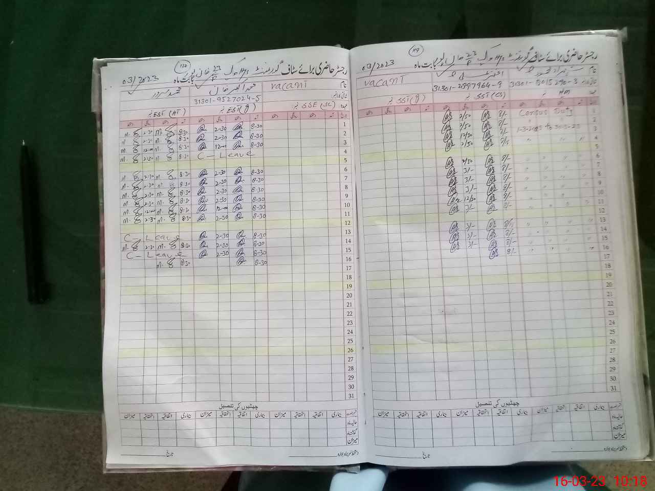| CNIC | Full Name | Designation | R/C | Absence During Last Calender Month |
