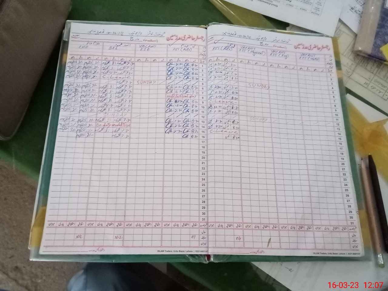 | CNIC | Full Name | Designation | R/C | Absence During Last Calender Month |