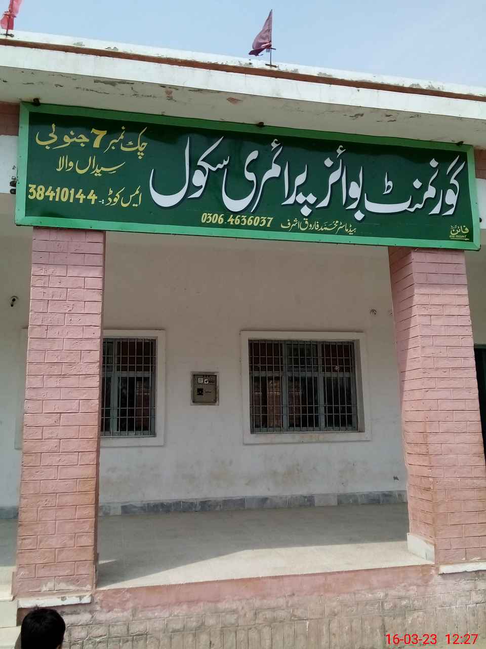 | EMIS Code: 38410144 | Name of School: GPS CHAK NO.7 SB | |||