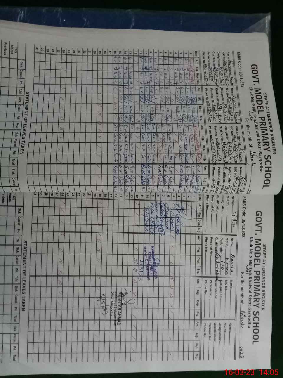 | Name: Za**** Pe**** Designation: (School Headmaster's/Headmistress's) PST Phone/Cell Number: 03**** |