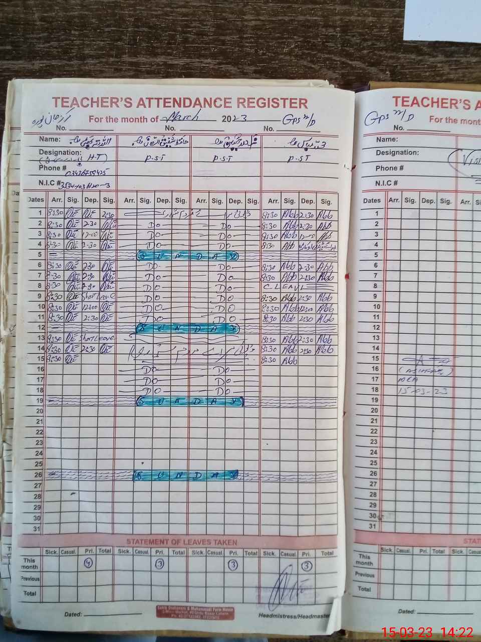 | Name: Mu**** Sh**** Designation: (School Headmaster's/Headmistress's) PST Phone/Cell Number: 03**** |