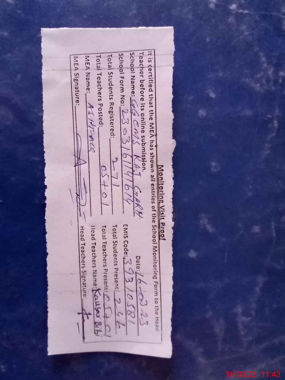 | EMIS Code: 39310581 | Name of School: GGCMS RAJ GARRH | |||