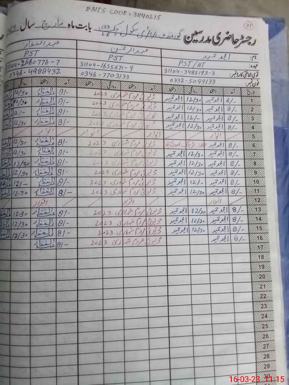 | Name: Am**** Ha**** Designation: (School Headmaster's/Headmistress's) PST Phone/Cell Number: 03**** |