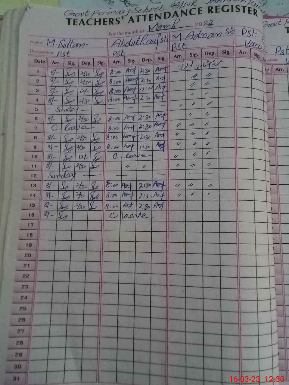 | Name: Ab**** Ra**** Designation: (School Headmaster's/Headmistress's) PST Phone/Cell Number: 03**** |