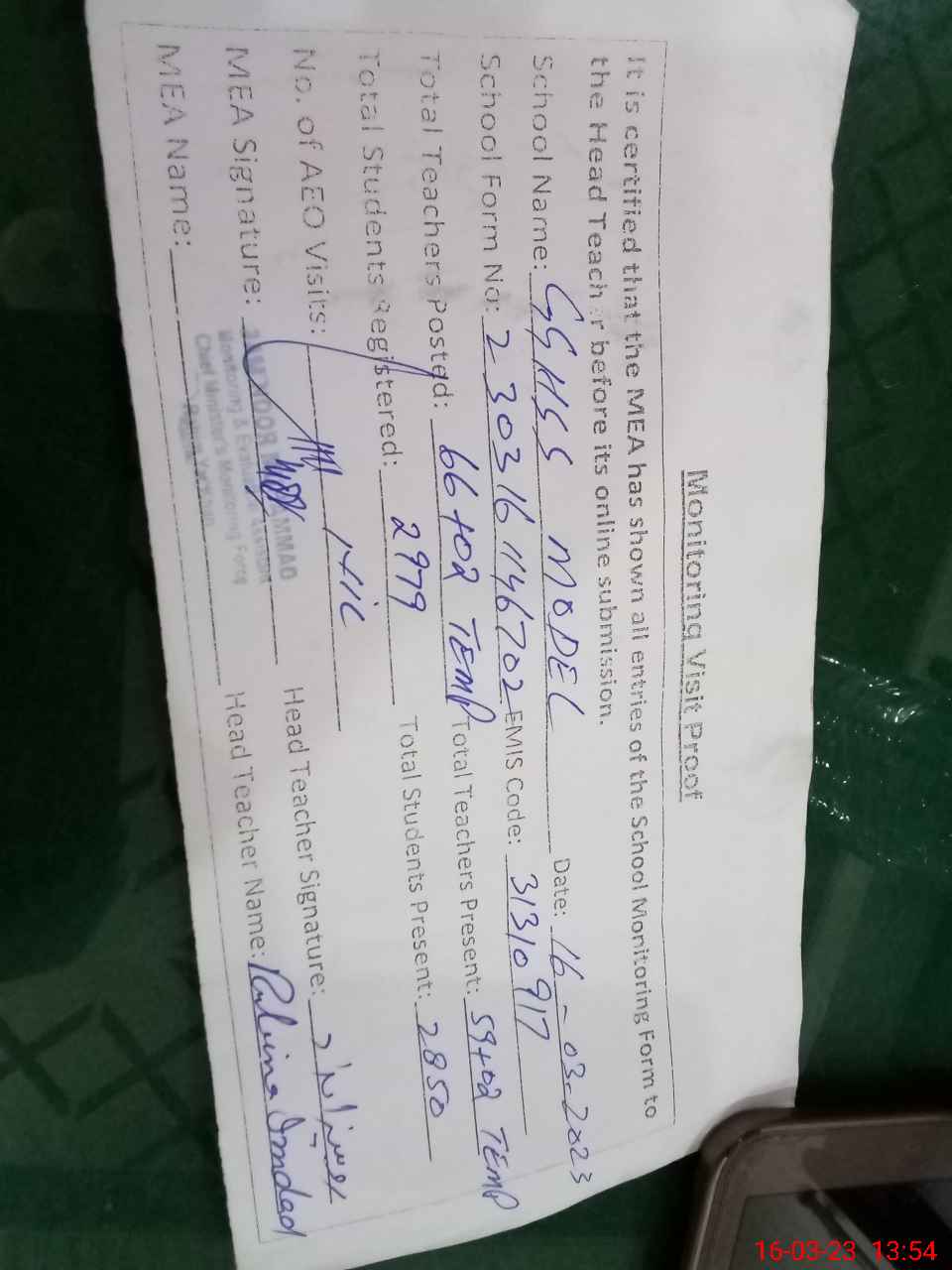 | EMIS Code: 31310917 | Name of School: GGHSS MODEL | |||