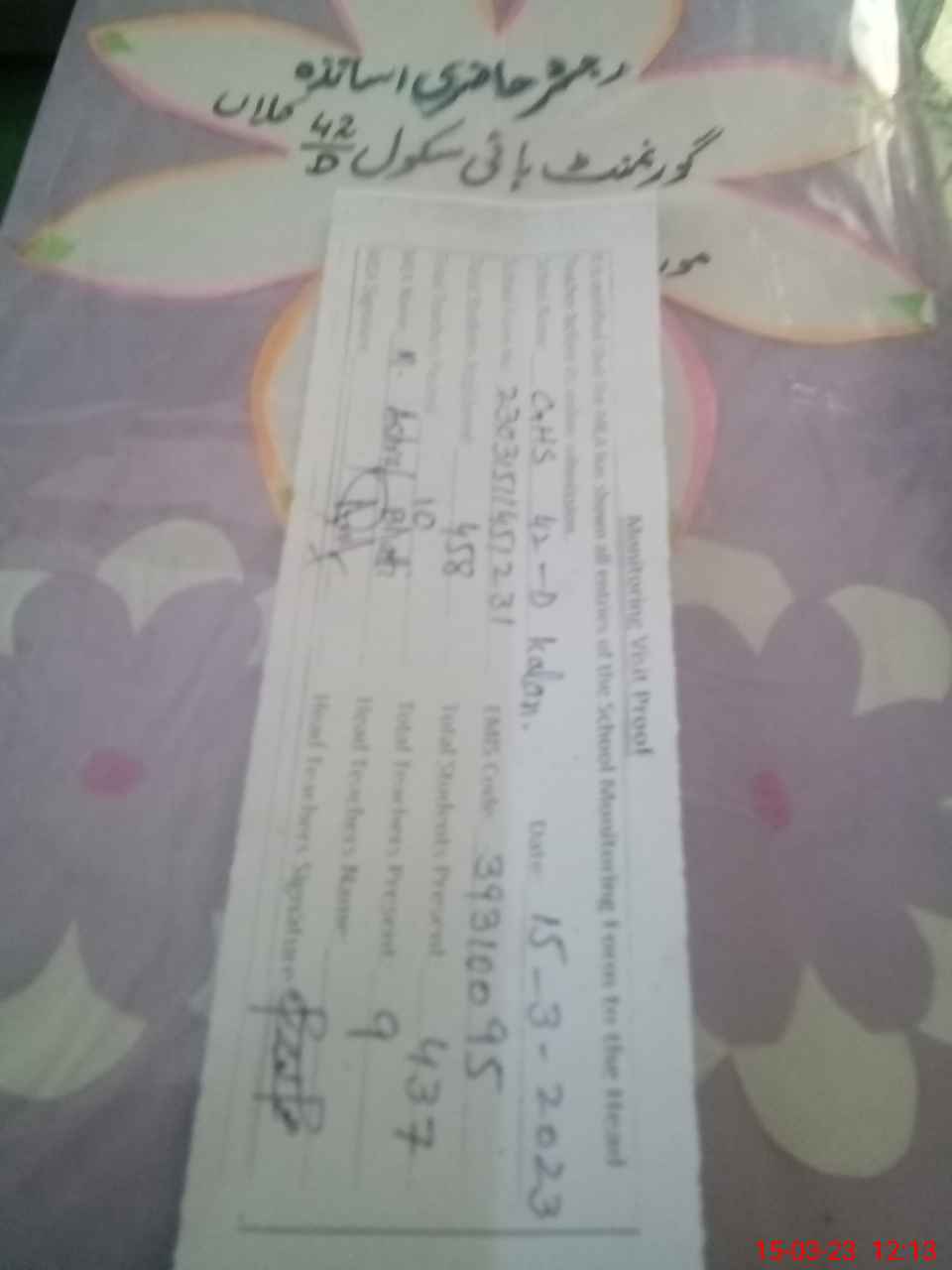| Name: MU**** AB**** HU**** Designation: (School Headmaster's/Headmistress's) S.S.T.(Arts) Phone/Cell Number: 03**** |