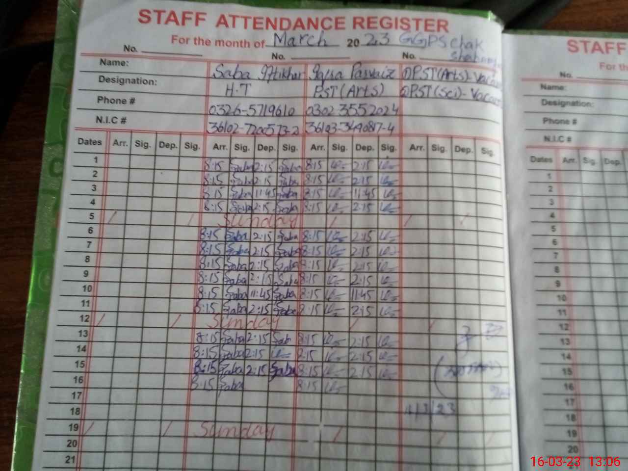 | Name: SA**** IF**** Designation: (School Headmaster's/Headmistress's) ESE (SCI-MATH) Phone/Cell Number: 03**** |