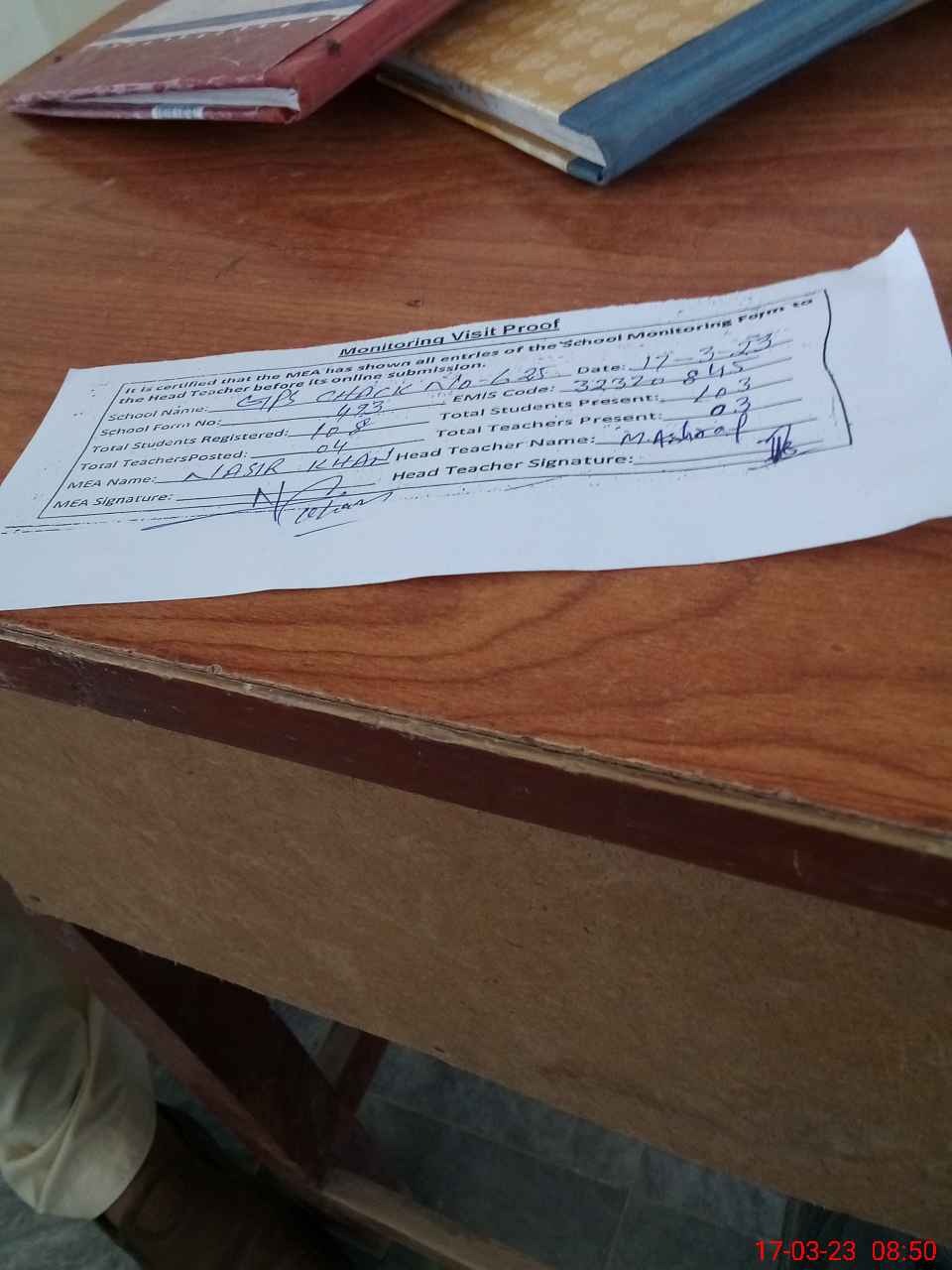 | EMIS Code: 32320845 | Name of School: GPS CHAK NO.625 TDA | |||