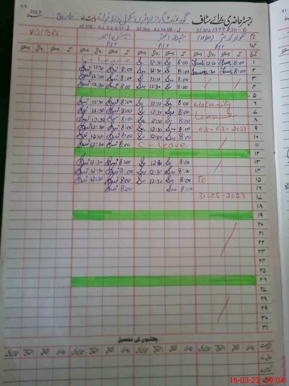 | Leave | Duty | Absent | Maternity | Medical | Ex- Pak |