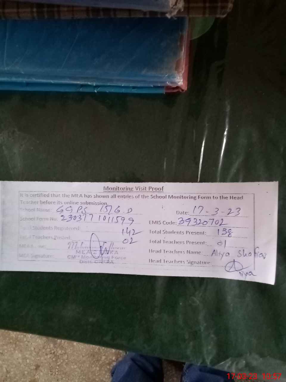 | EMIS Code: 39320702 | Name of School: GGPS CHAK NO.15/G.D | |||