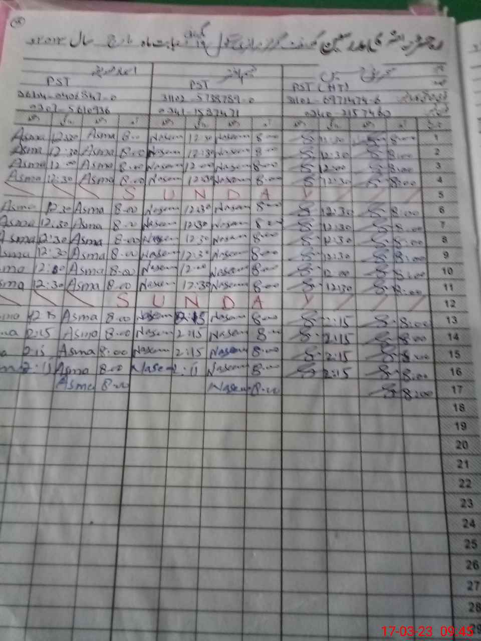 | Name: SE**** HU**** Designation: (School Headmaster's/Headmistress's) PST Phone/Cell Number: 03**** |