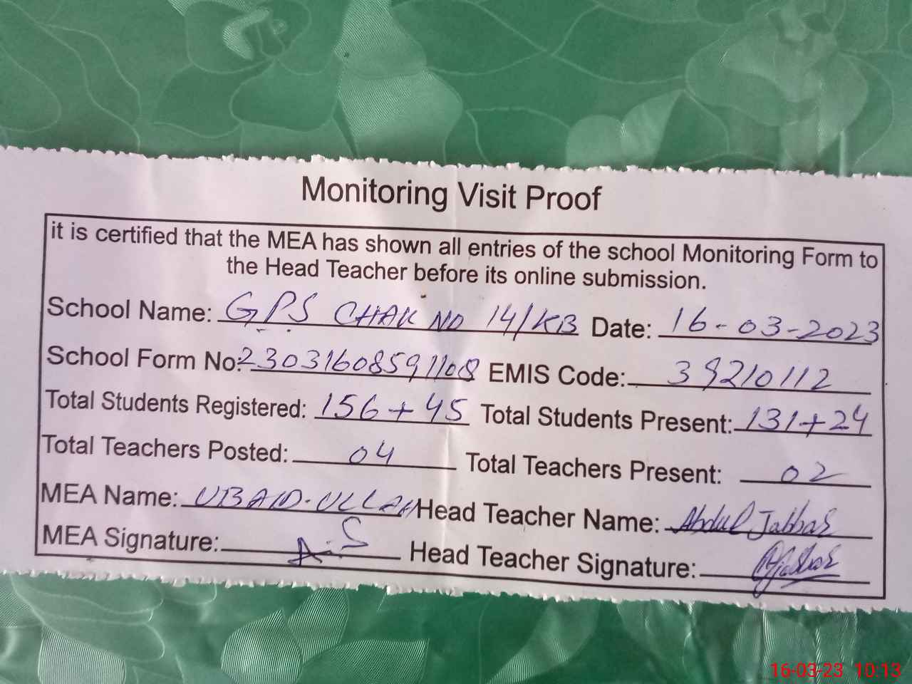 | EMIS Code: 39210112 | Name of School: GPS 14 KB P.O KALYANA | |||