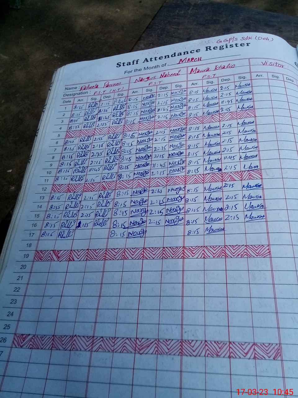 | Sr.No. | Visit Date | Designation | ||