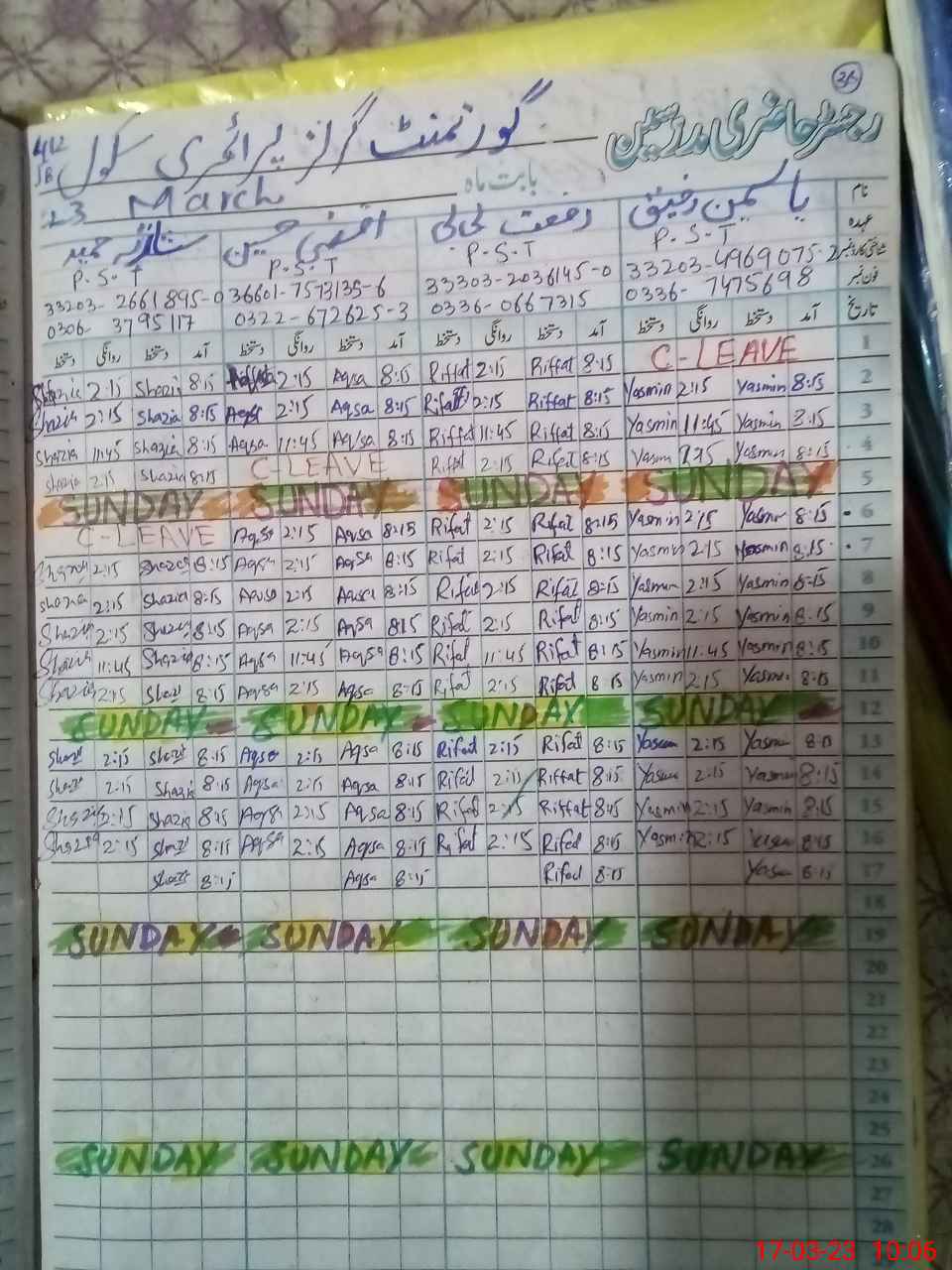 | Name: YA**** RA**** Designation: (School Headmaster's/Headmistress's) PST Phone/Cell Number: 03**** |
