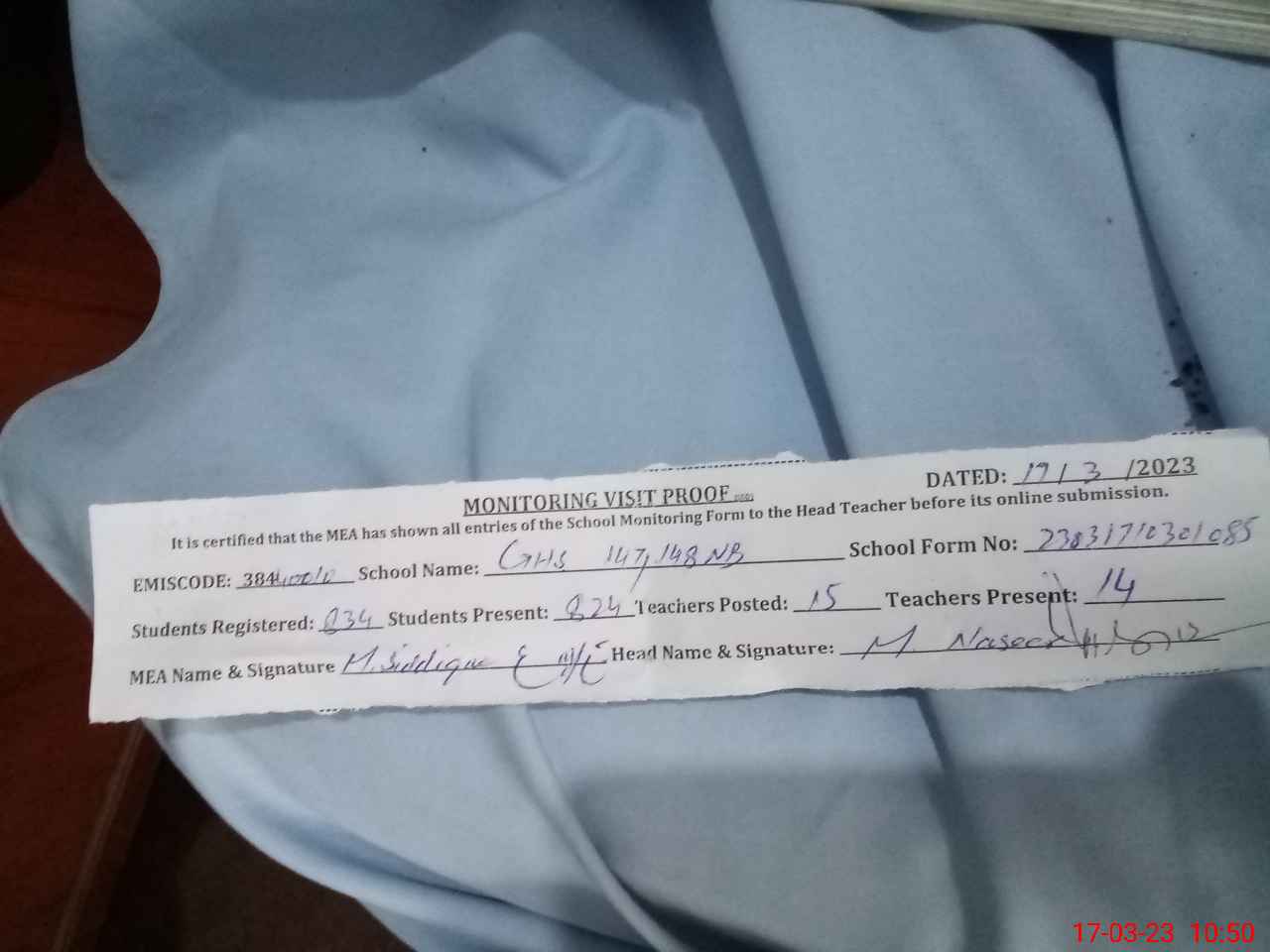 | EMIS Code: 38440010 | Name of School: GHS CHAK NO.147/148 NB | |||