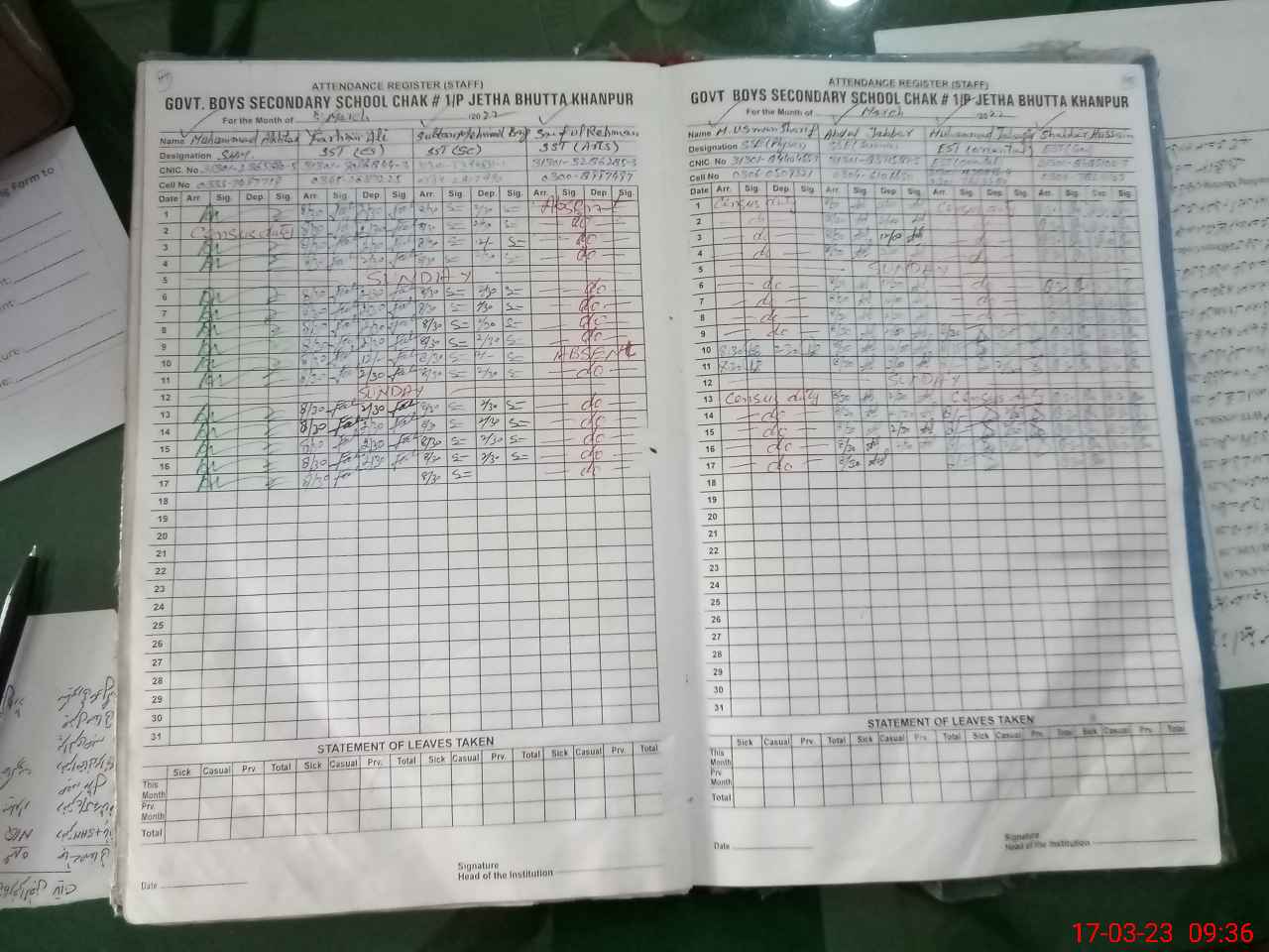 | CNIC | Full Name | Designation | R/C | Absence During Last Calender Month |